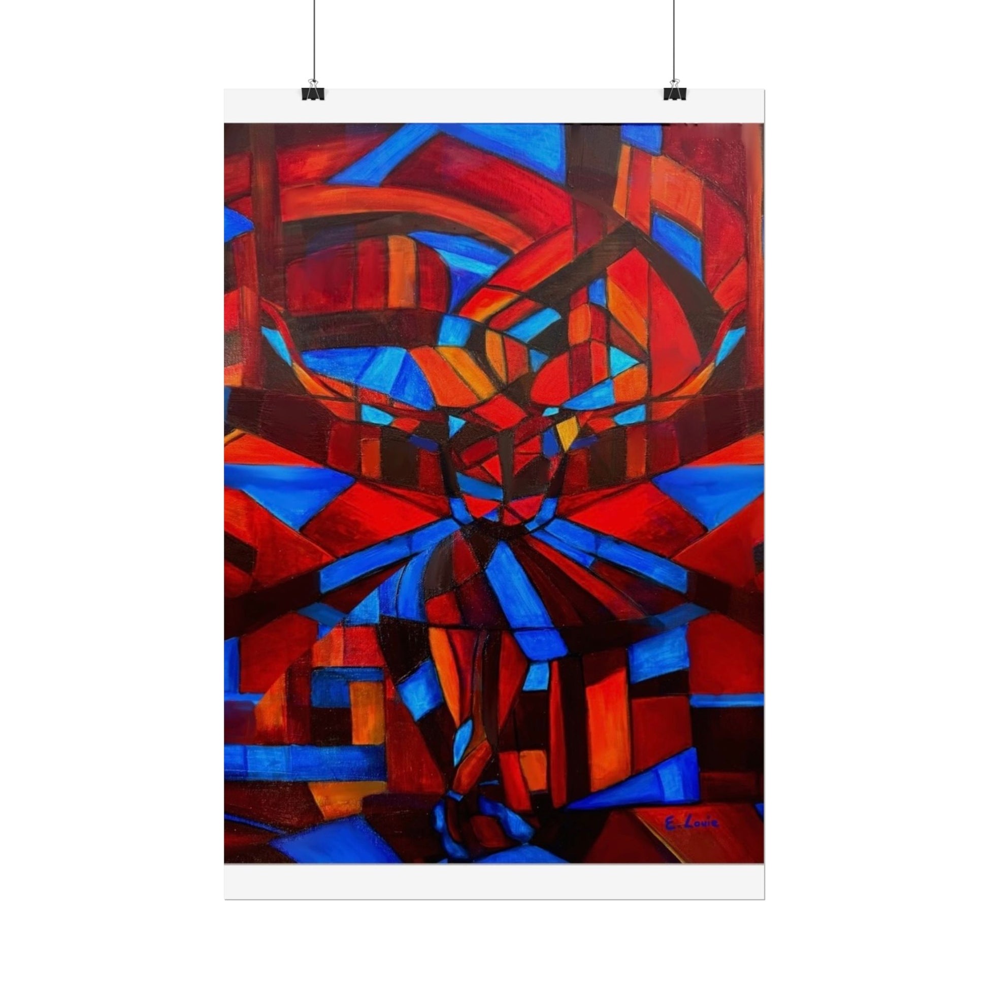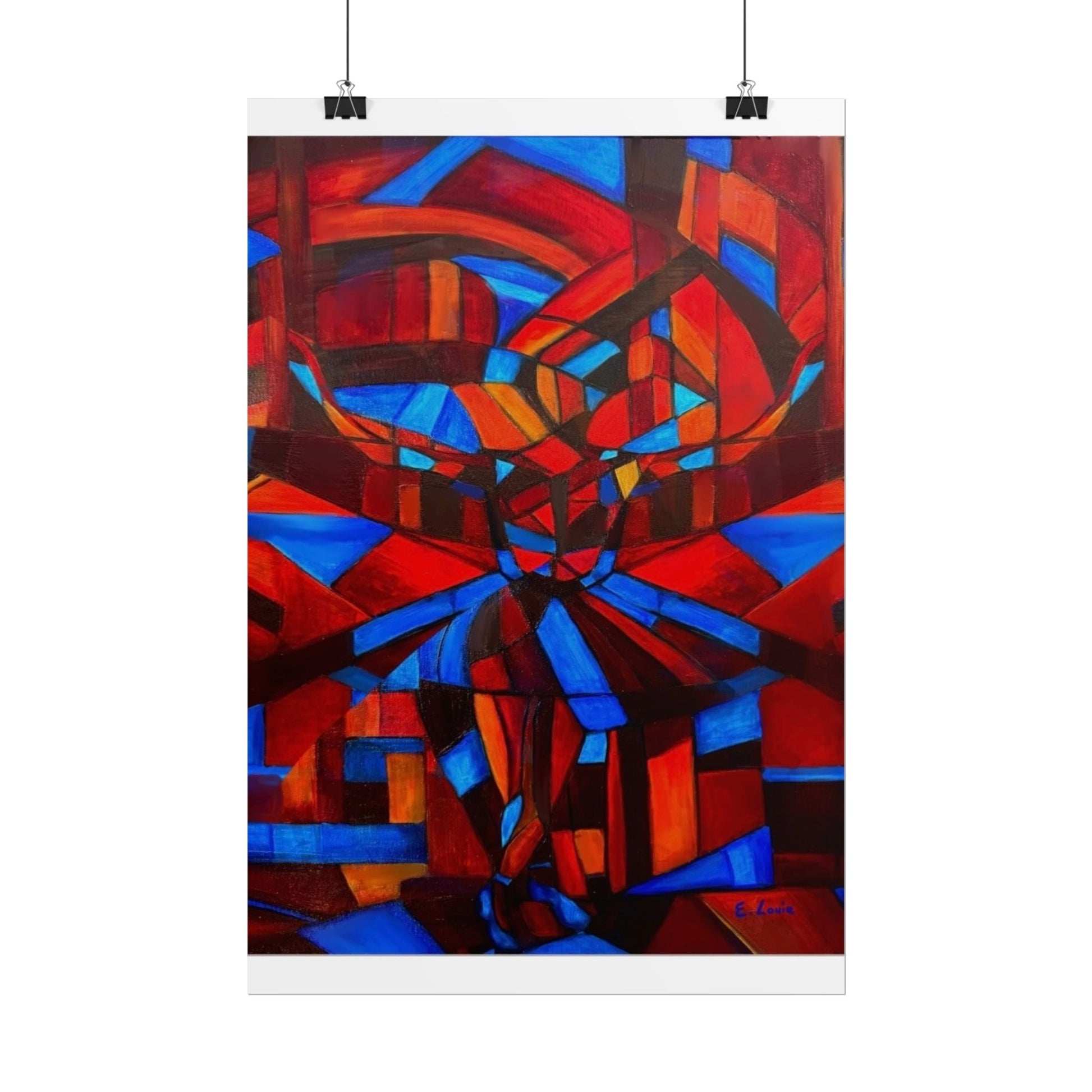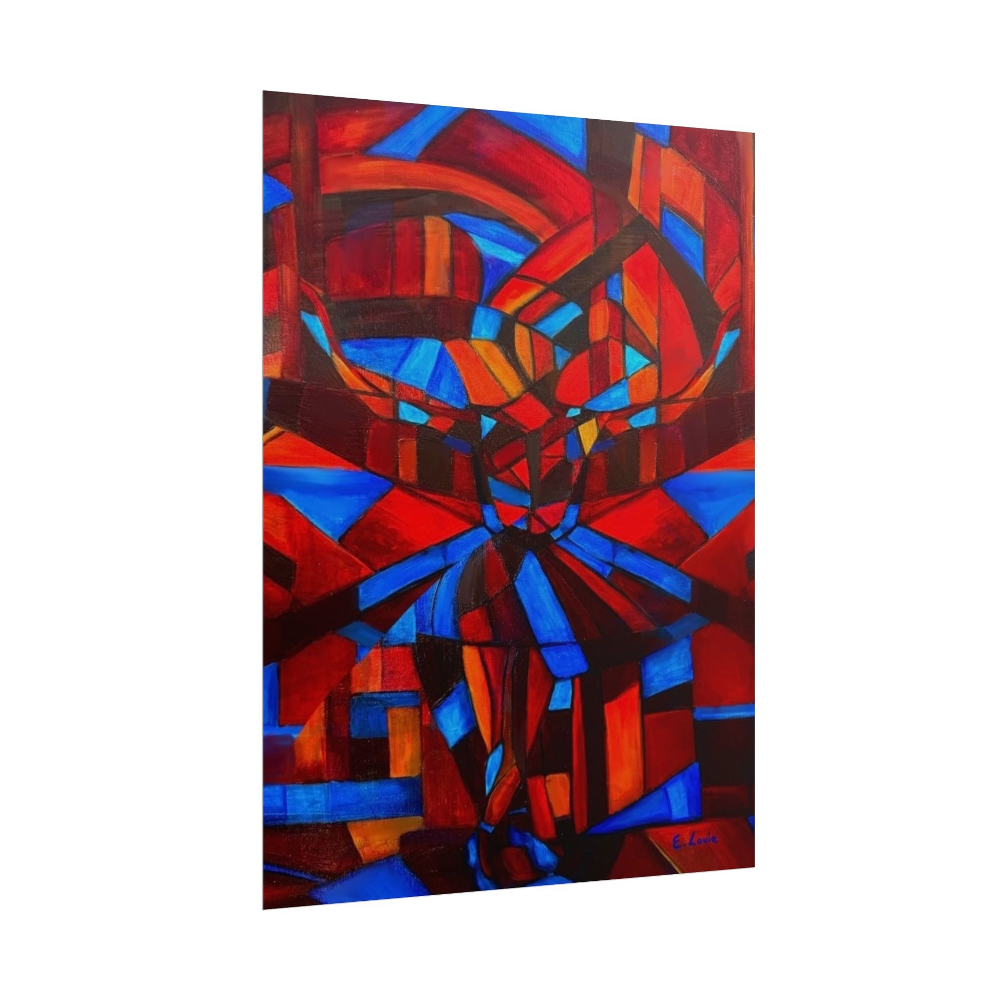 This rolled poster brings bold geometry and saturated color into any room. Deep crimsons meet electric blues in an abstract composition that reads like stained glass—structured yet alive with motion. Printed on archival, gallery-grade papers with giclée inks, the image keeps its clarity and intensity over time. Hang it in a studio, beside a record shelf, or lean it against a mid-century credenza to add a crafted, contemplative edge to your space. The result feels curated and personal: a tactile, artful statement that ages gracefully and rewards close viewing.