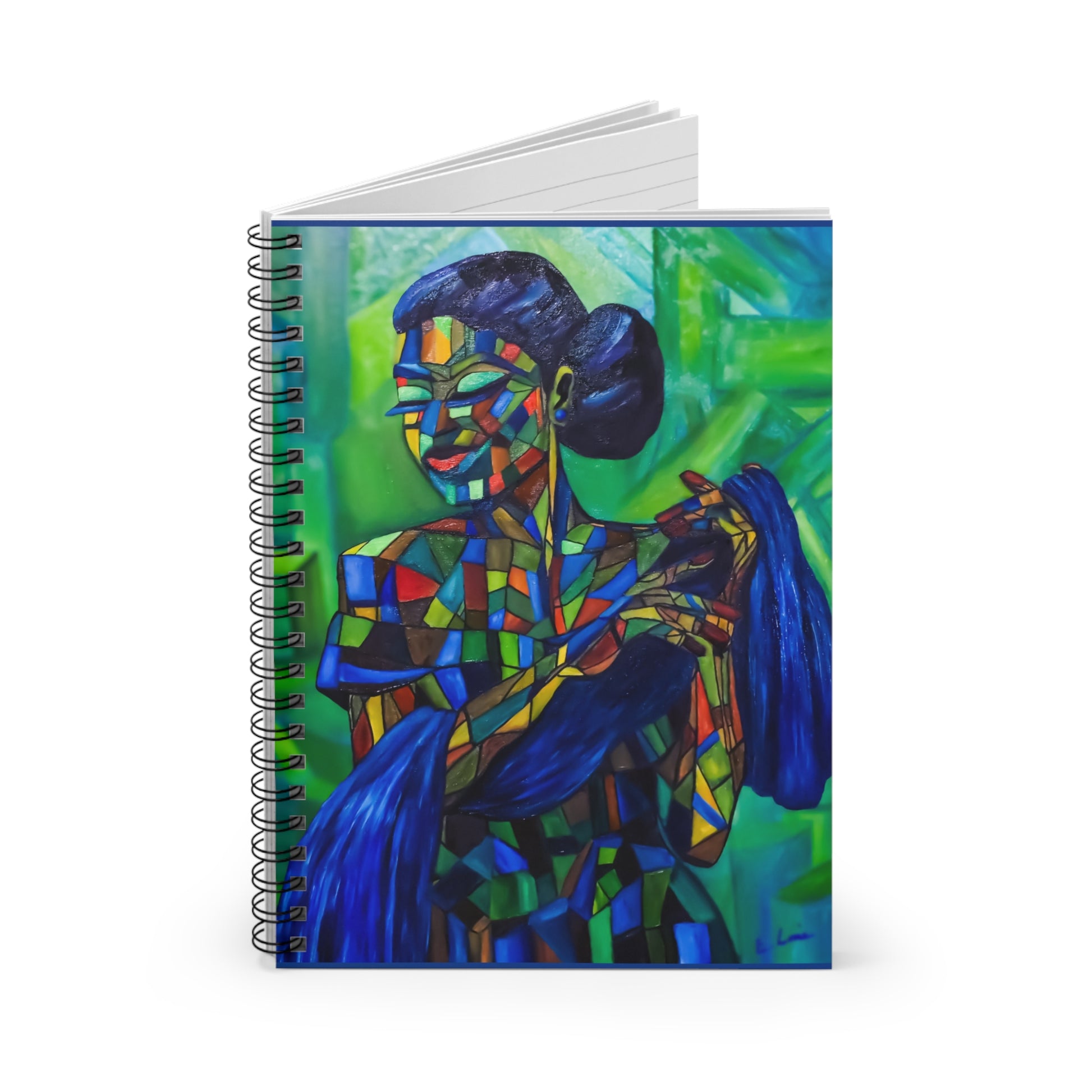 This spiral notebook carries a vibrant, mosaic-inspired cover that feels like a small, personal gallery. The colorful portrait draws the eye — bold blues and greens create depth while geometric panels add movement. Inside, smoothly ruled 90gsm pages invite longhand thoughts, meeting notes, sketches, and lists without feathering. A metal spiral lets pages lie flat or be removed cleanly, and a document pocket on the inside back cover keeps loose notes and receipts secure. Compact at 6" x 8", it slips into a tote or laptop bag and becomes a daily companion for creatives who prefer tactile planning and expressive covers that spark ideas.