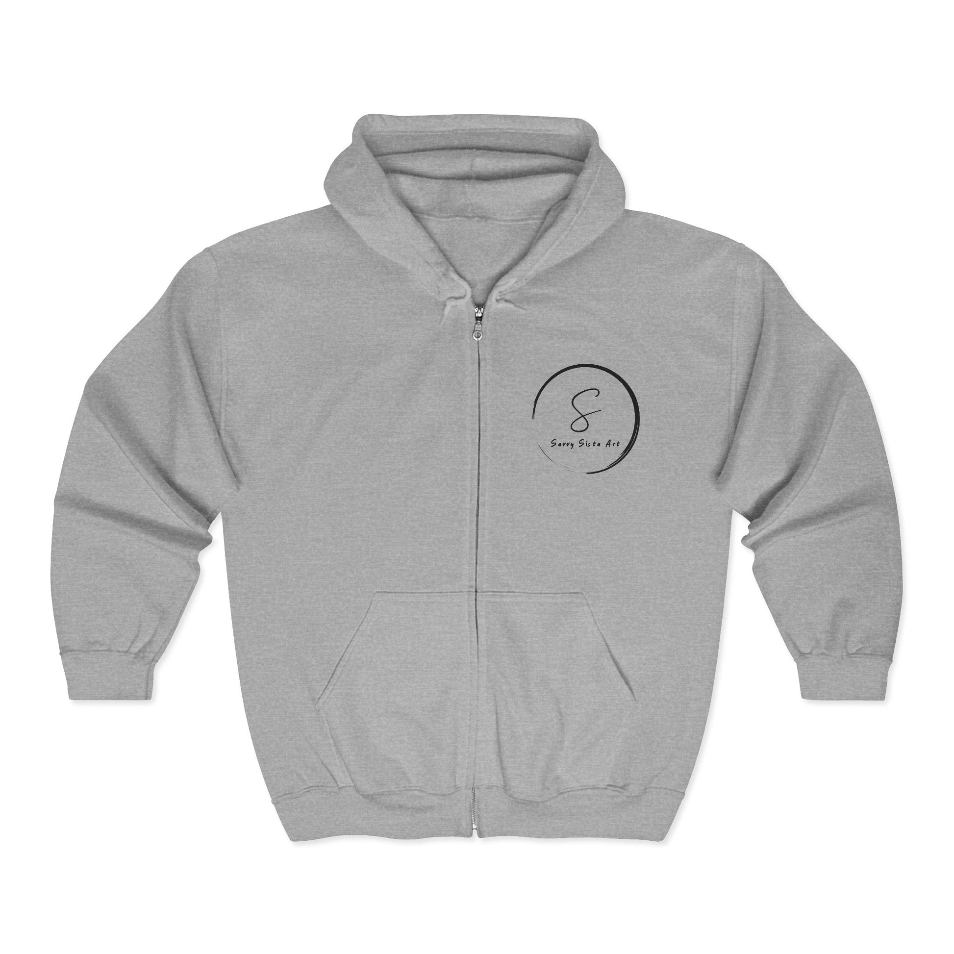 Minimalist 'Savvy Sista Art' Circle Zip Hoodie – Lightweight Grey Full-Zip Sweatshirt